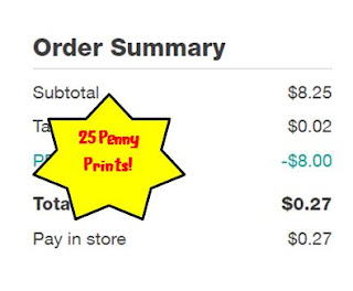 You can get 25 4x6 prints for only 25¢. Go to Walgreens Photo and order put 25 4x6 prints in your cart.